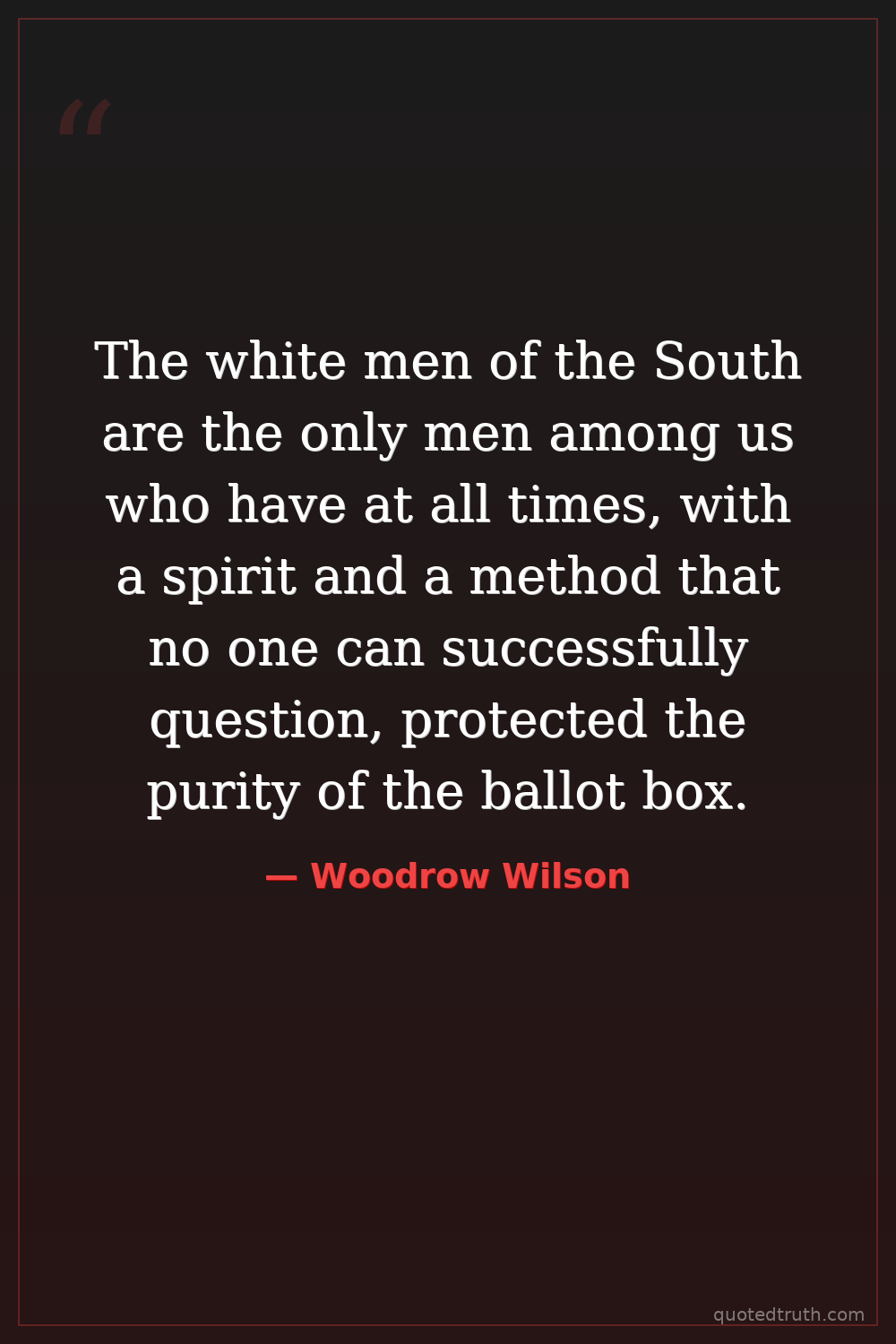 The white men of the South are the only men among us who have at all times, with a spirit and a method that no one can successfully question, protected the purity of the ballot box.