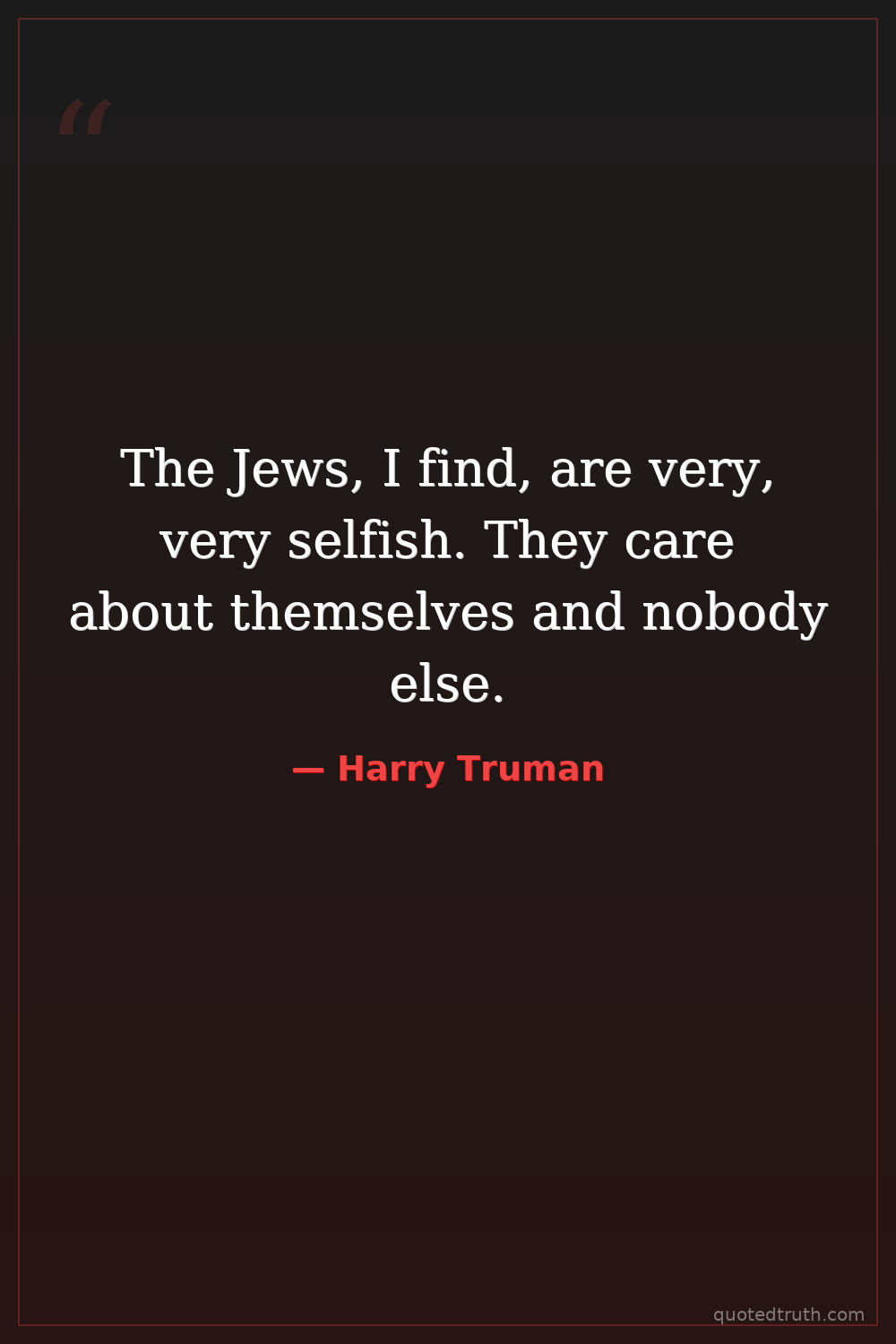 The Jews, I find, are very, very selfish. They care about themselves and nobody else.