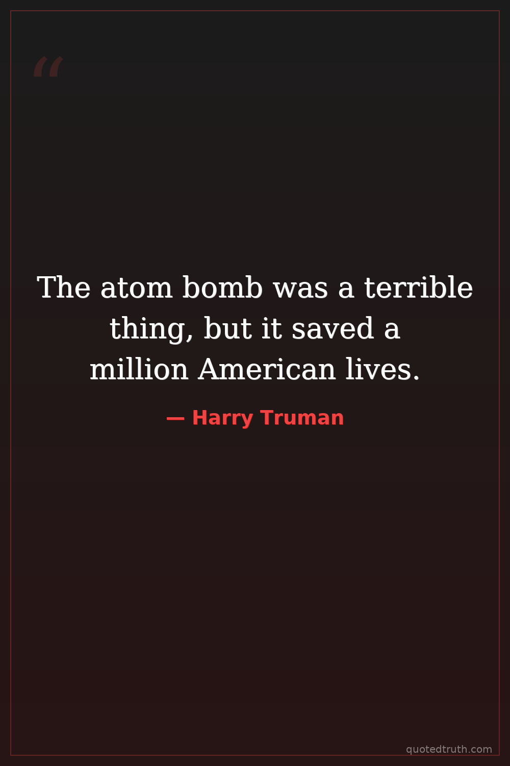 The atom bomb was a terrible thing, but it saved a million American lives.