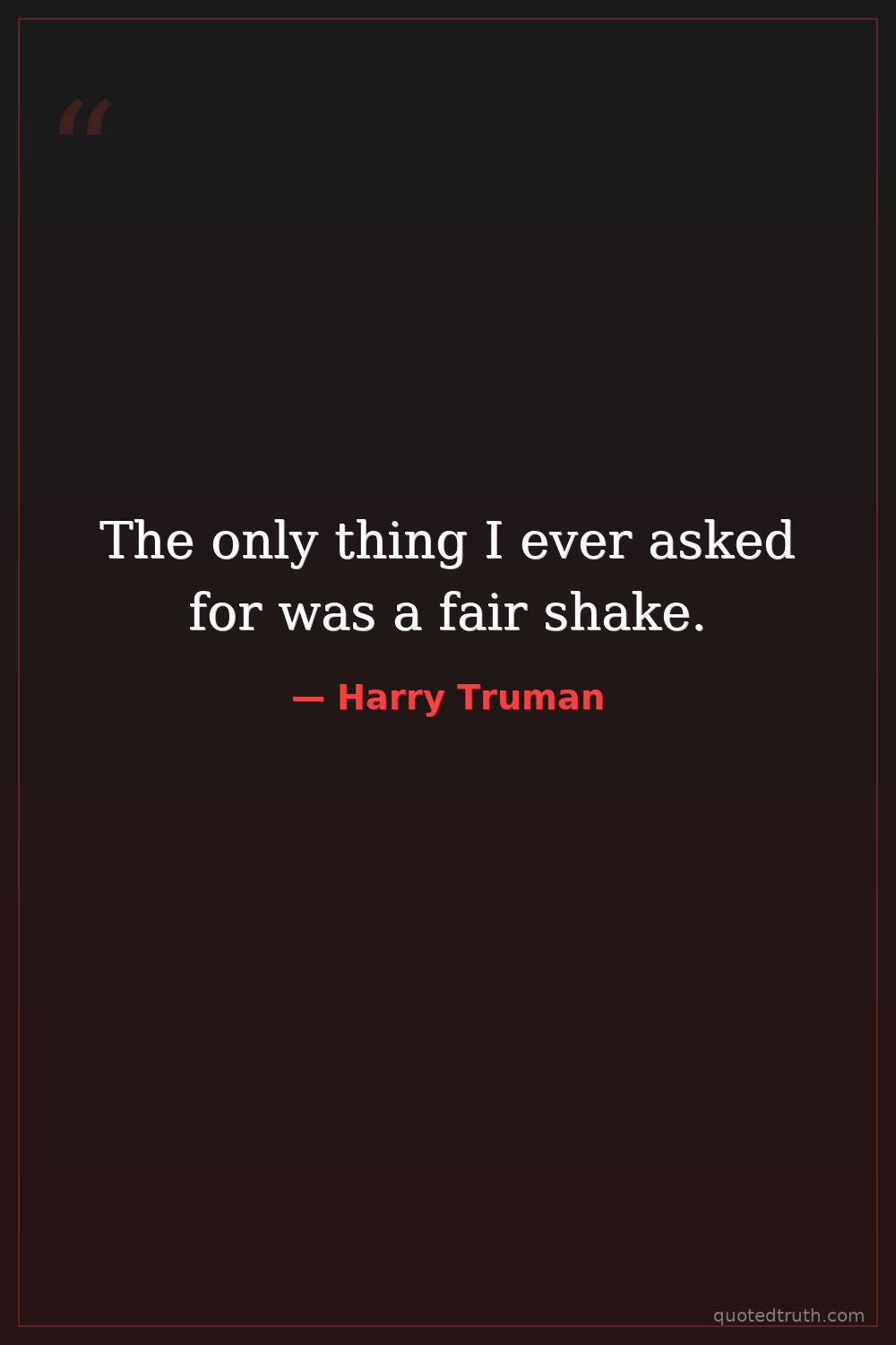 The only thing I ever asked for was a fair shake.