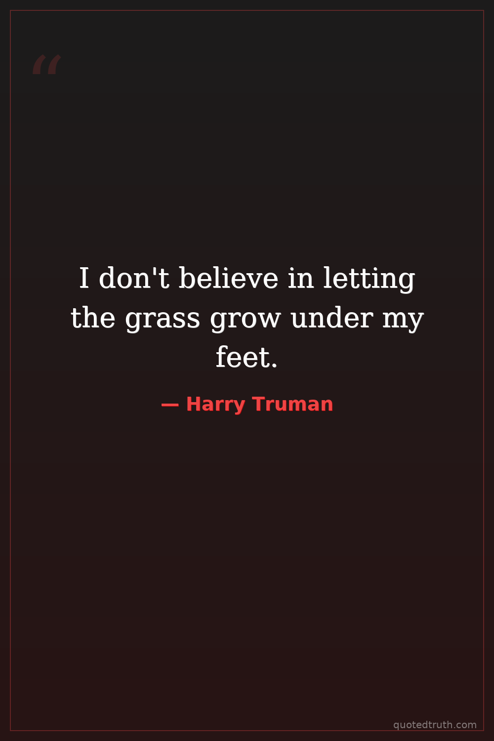 I don't believe in letting the grass grow under my feet.