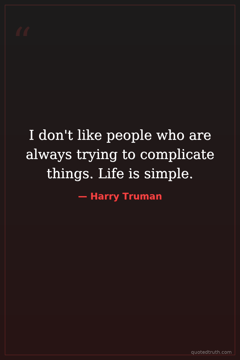 I don't like people who are always trying to complicate things. Life is simple.