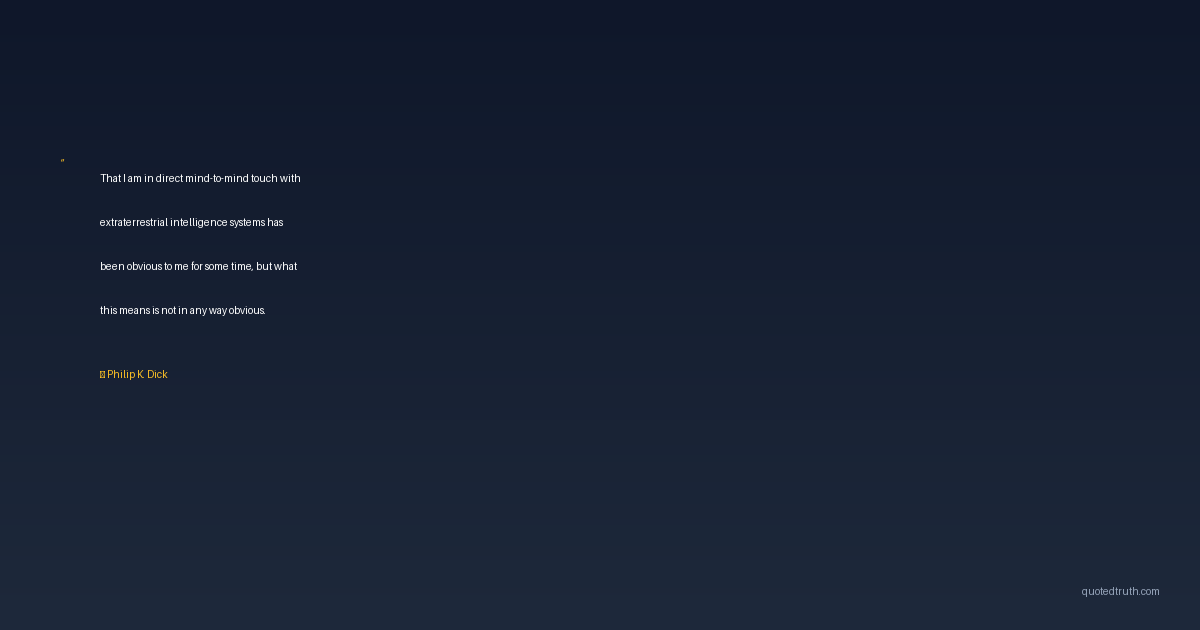 That I am in direct mind-to-mind touch with extraterrestrial intelligence systems has been obvious to me for some time, but what this means is not in any way obvious.