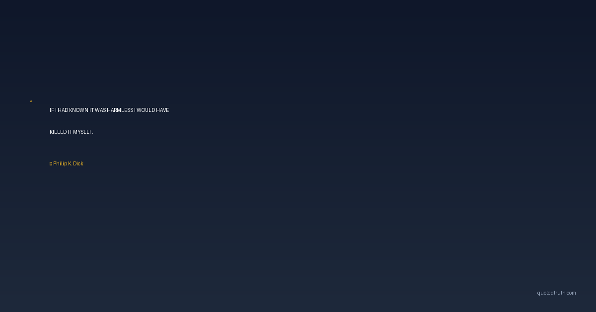 IF I HAD KNOWN IT WAS HARMLESS I WOULD HAVE KILLED IT MYSELF.