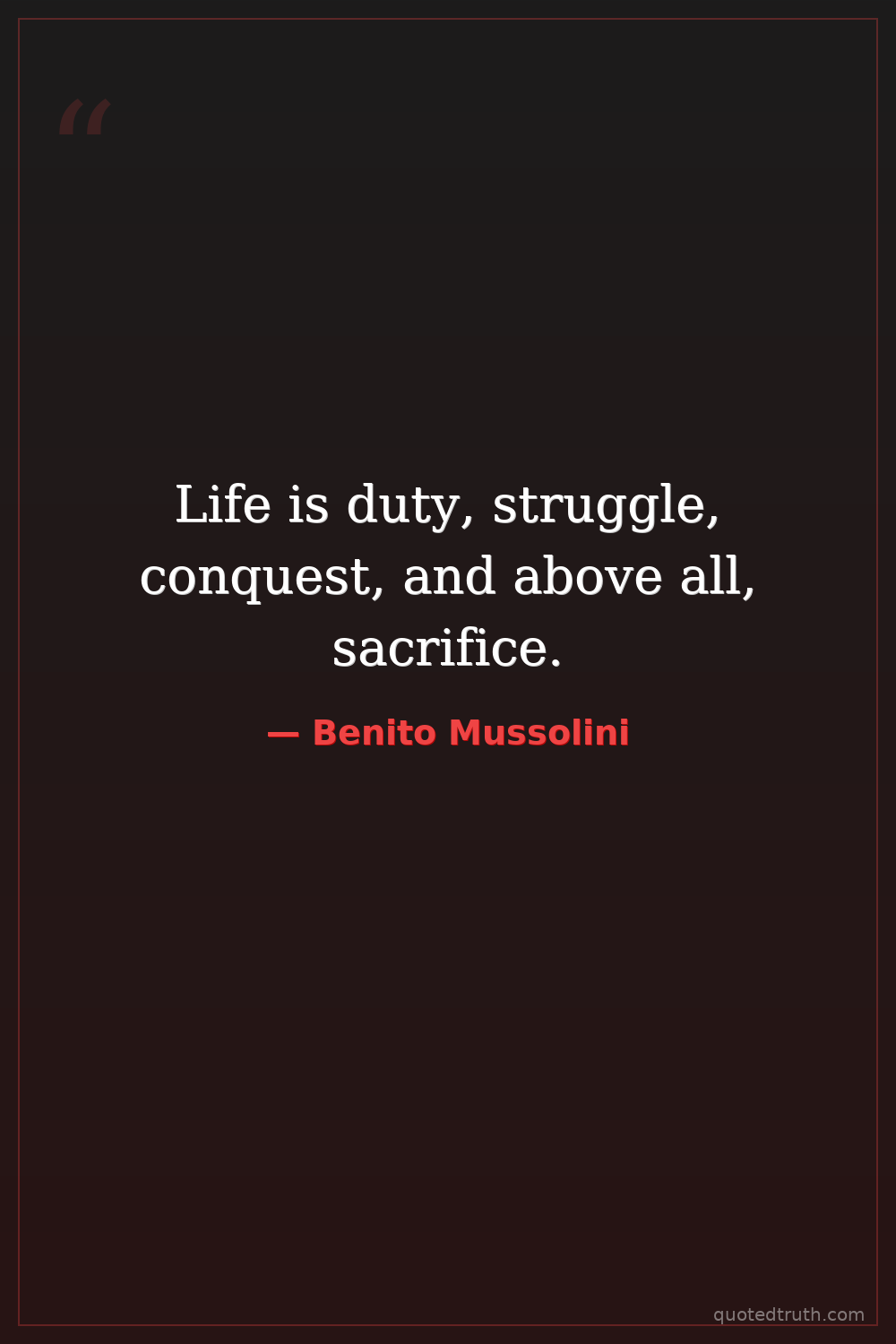Life is duty, struggle, conquest, and above all, sacrifice.