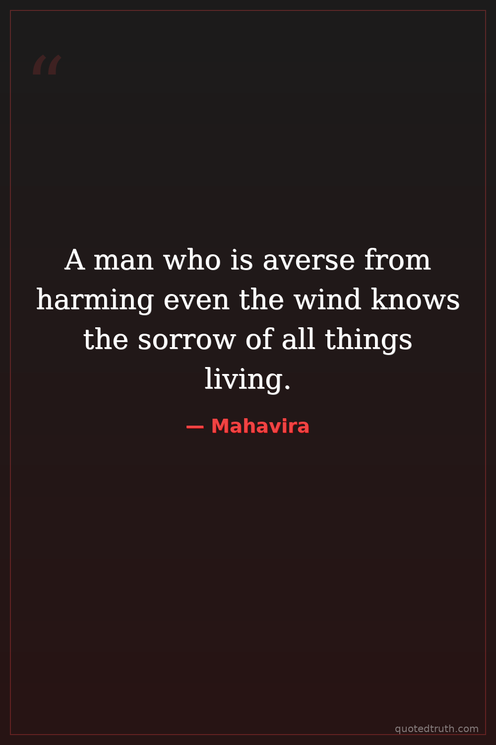 A man who is averse from harming even the wind knows the sorrow of all things living.