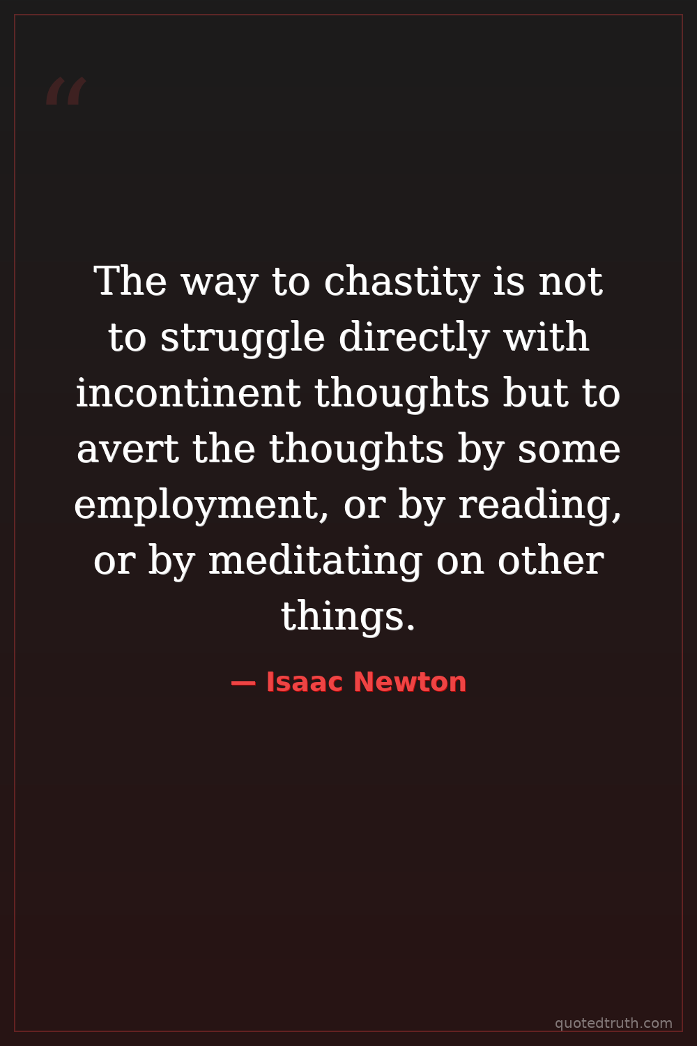 The way to chastity is not to struggle directly with incontinent thoughts but to avert the thoughts by some employment, or by reading, or by meditating on other things.