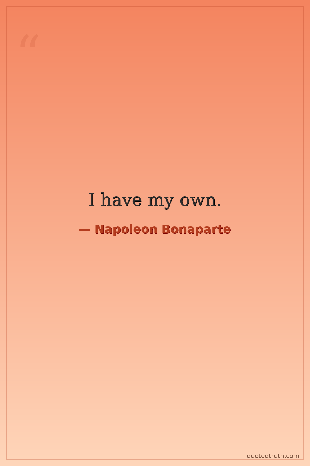 Humorous"Power is my mistress. I have worked too hard to conquer her, and I will not allow anyone to take her from me."
