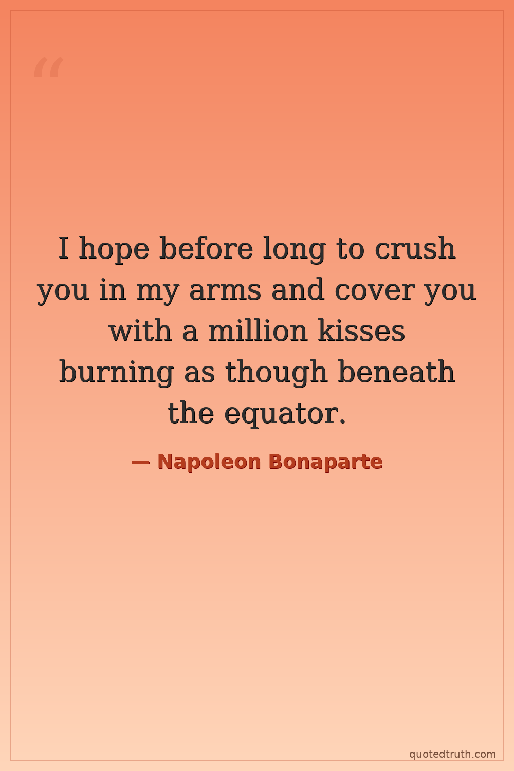 I hope before long to crush you in my arms and cover you with a million kisses burning as though beneath the equator.
