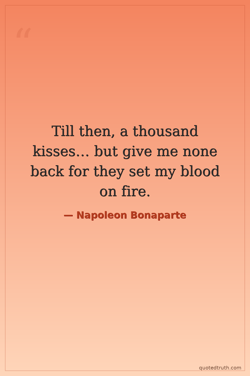 Till then, a thousand kisses… but give me none back for they set my blood on fire.