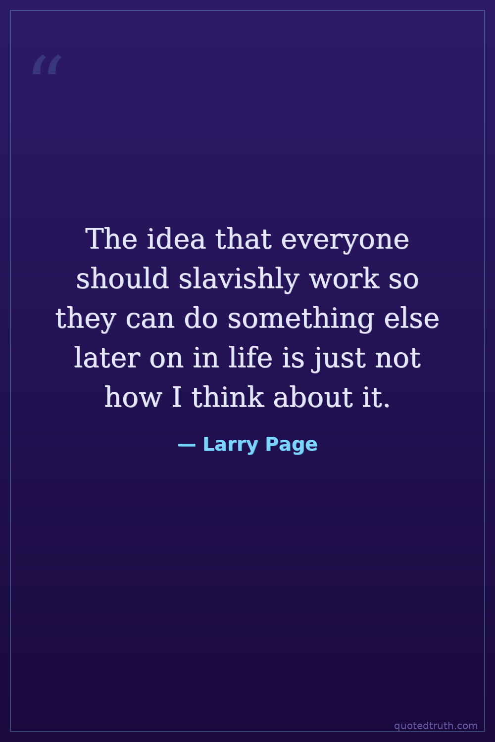 The idea that everyone should slavishly work so they can do something else later on in life is just not how I think about it.