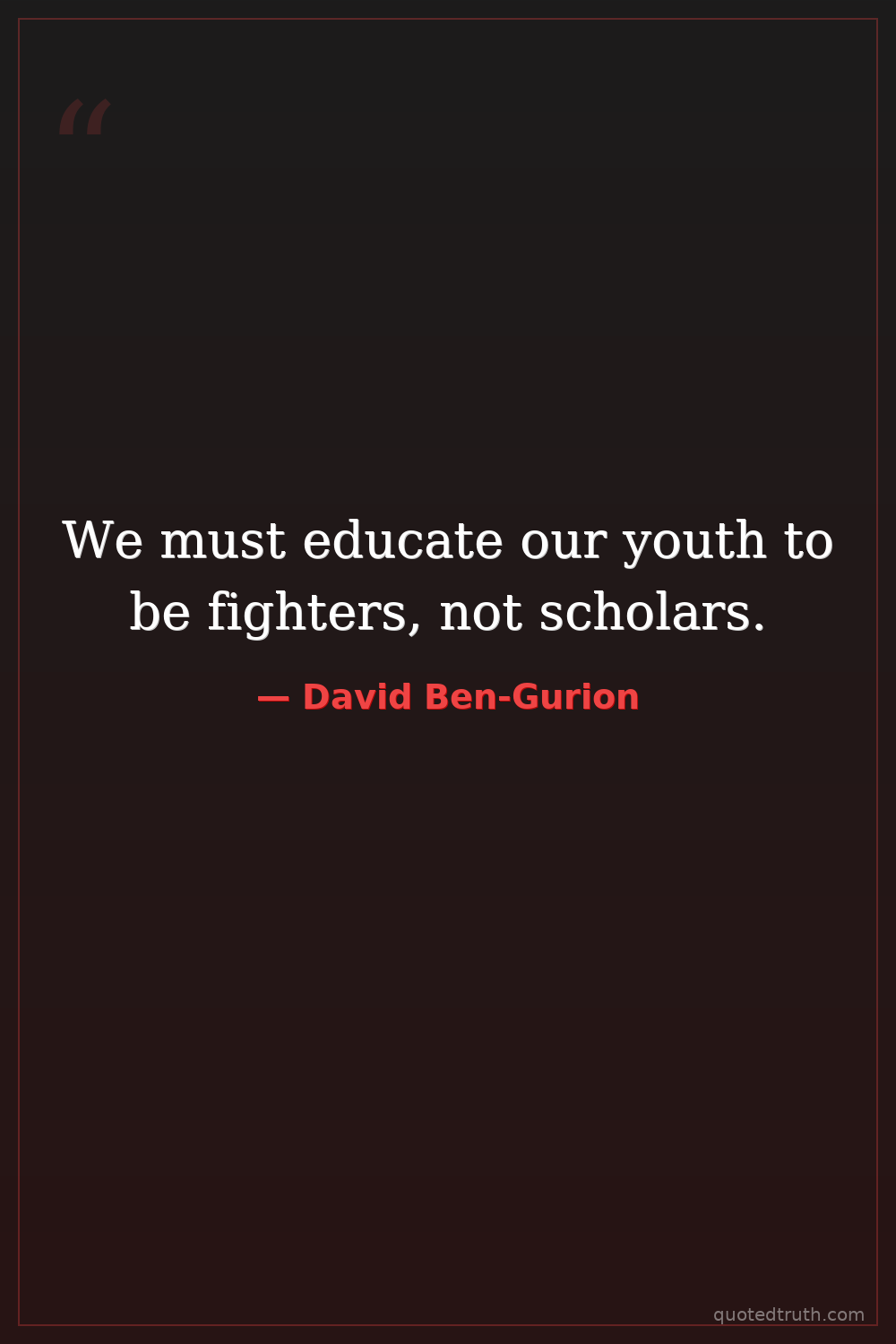 We must educate our youth to be fighters, not scholars.