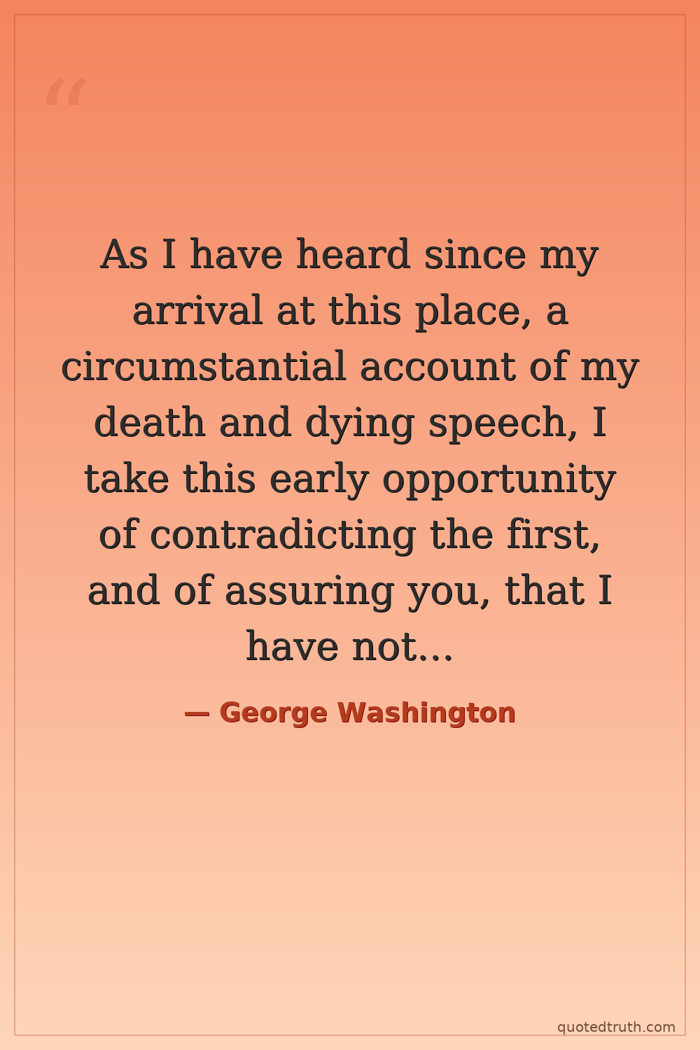As I have heard since my arrival at this place, a circumstantial account of my death and dying speech, I take this early opportunity of contradicting the first, and of assuring you, that I have not as yet composed the latter.