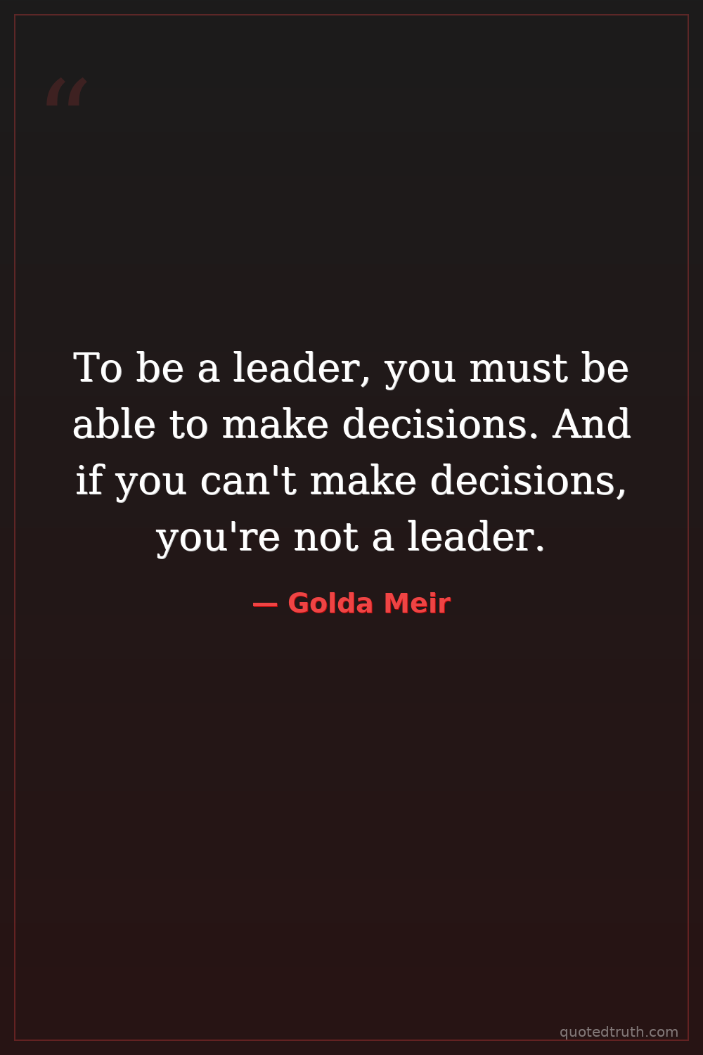To be a leader, you must be able to make decisions. And if you can't make decisions, you're not a leader.