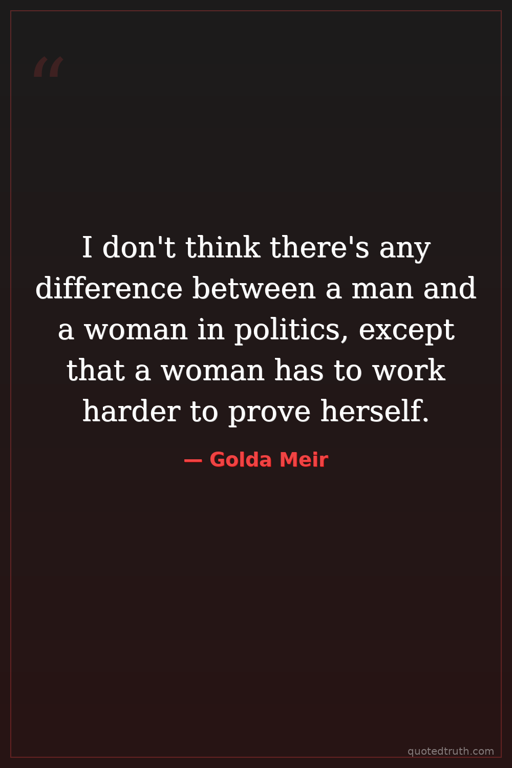 I don't think there's any difference between a man and a woman in politics, except that a woman has to work harder to prove herself.