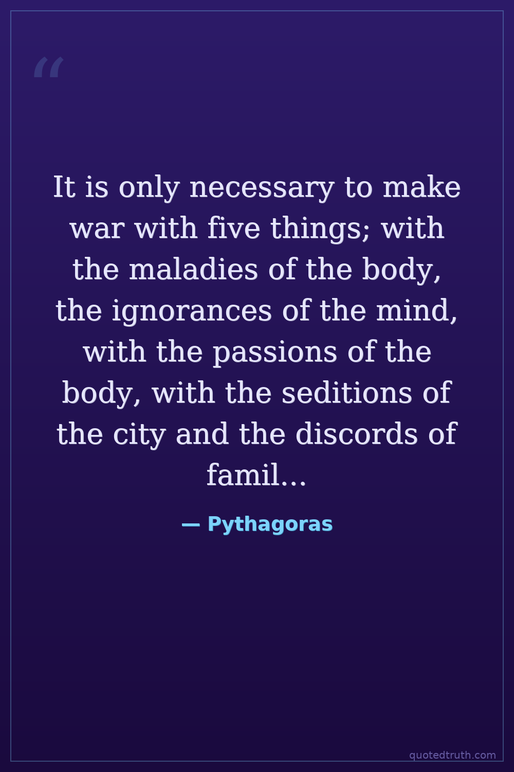 It is only necessary to make war with five things; with the maladies of the body, the ignorances of the mind, with the passions of the body, with the seditions of the city and the discords of families.