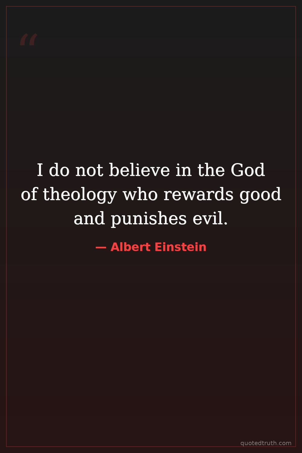I do not believe in the God of theology who rewards good and punishes evil.