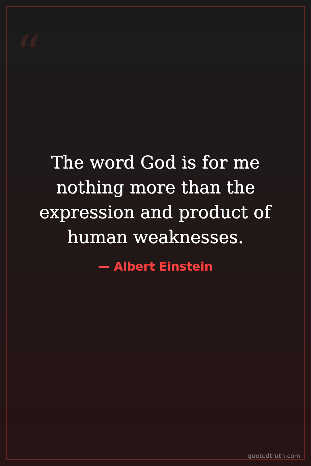 The word God is for me nothing more than the expression and product of human weaknesses.