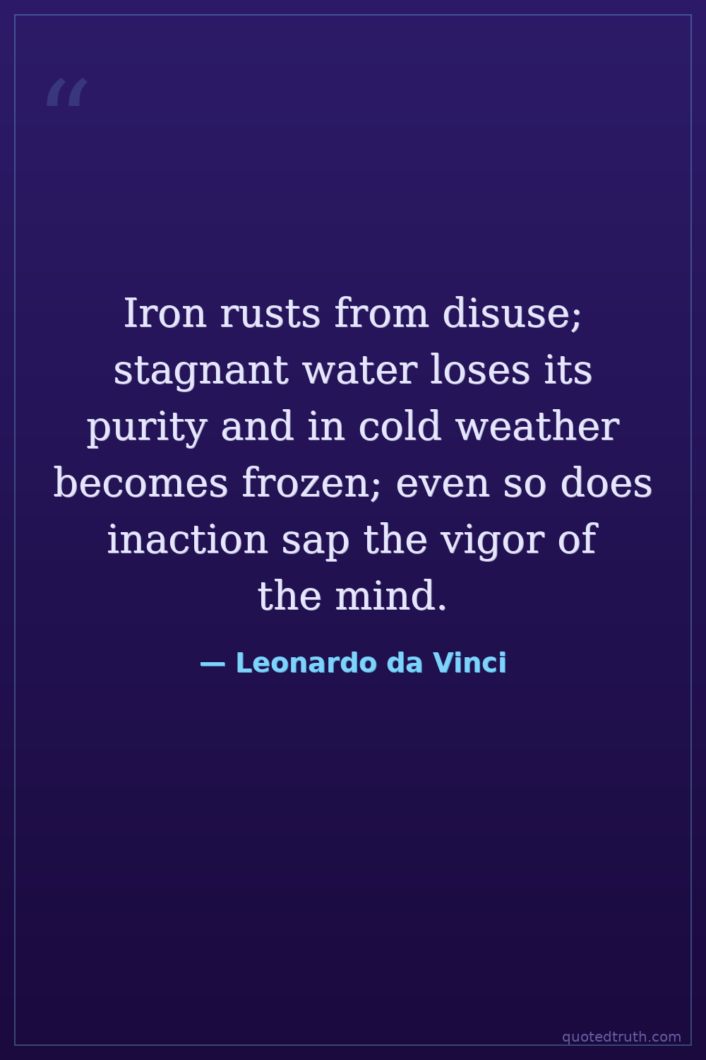 Iron rusts from disuse; stagnant water loses its purity and in cold weather becomes frozen; even so does inaction sap the vigor of the mind.