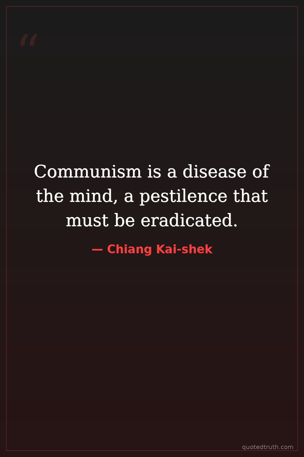 Communism is a disease of the mind, a pestilence that must be eradicated.