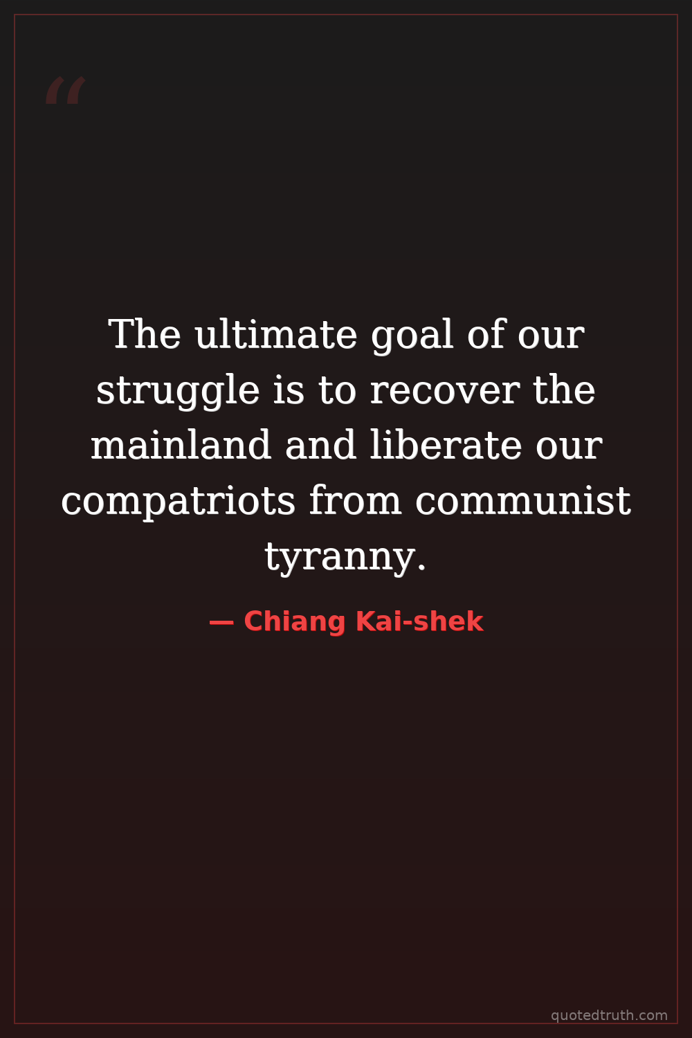 The ultimate goal of our struggle is to recover the mainland and liberate our compatriots from communist tyranny.