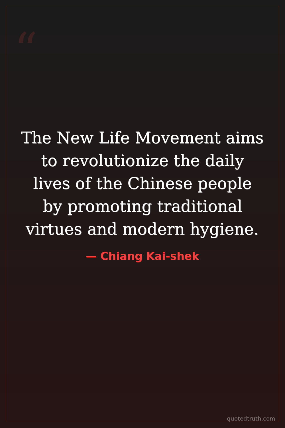 The New Life Movement aims to revolutionize the daily lives of the Chinese people by promoting traditional virtues and modern hygiene.