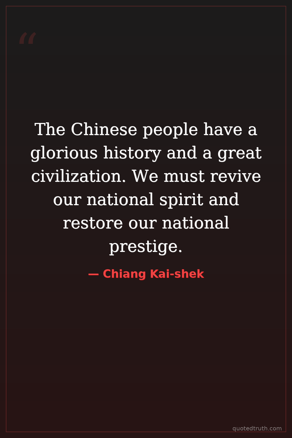 The Chinese people have a glorious history and a great civilization. We must revive our national spirit and restore our national prestige.