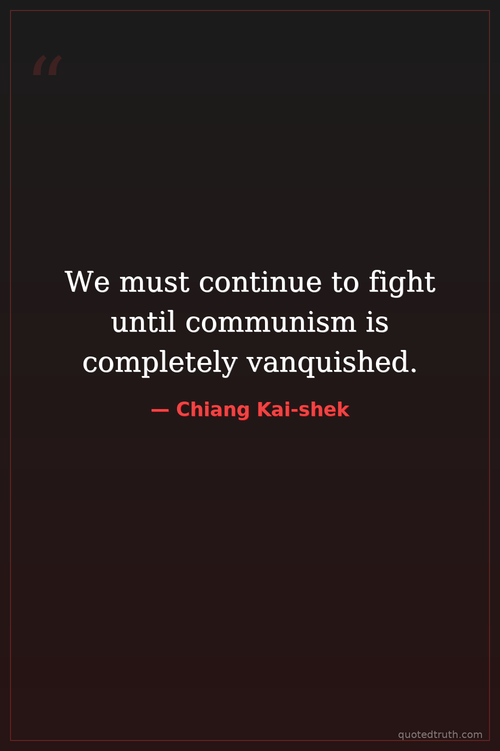 We must continue to fight until communism is completely vanquished.