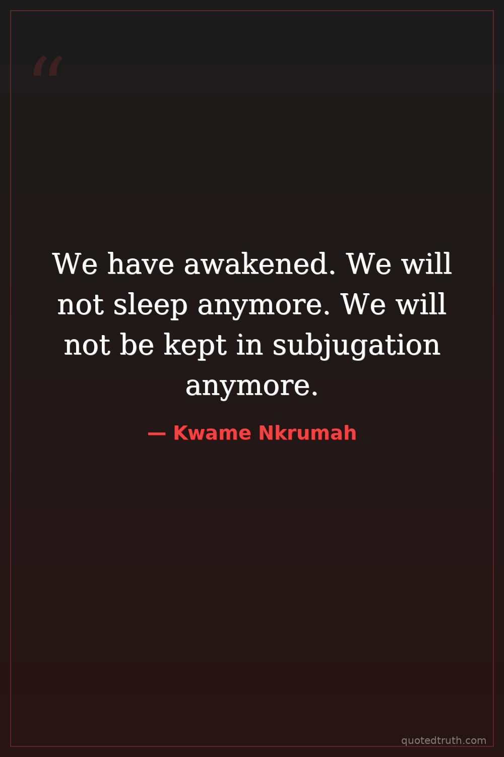 We have awakened. We will not sleep anymore. We will not be kept in subjugation anymore.