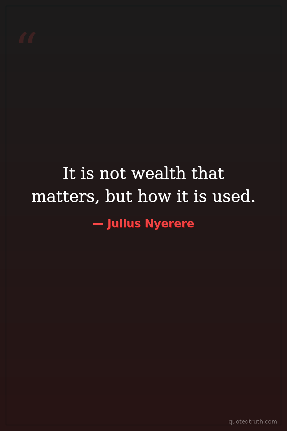 It is not wealth that matters, but how it is used.