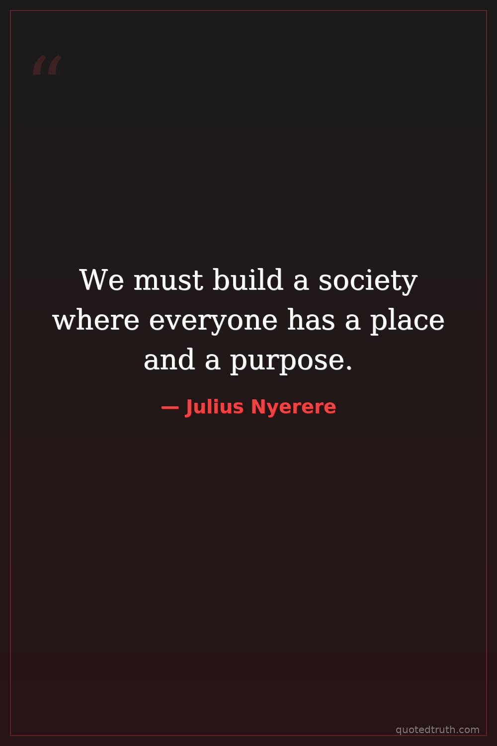 We must build a society where everyone has a place and a purpose.
