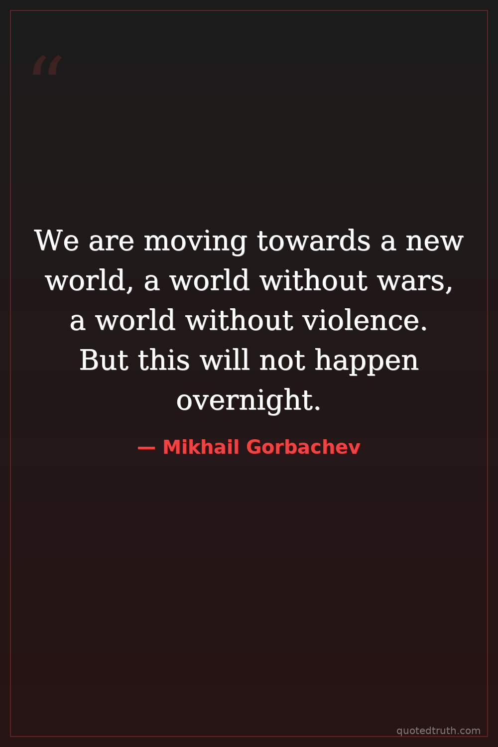 We are moving towards a new world, a world without wars, a world without violence. But this will not happen overnight.