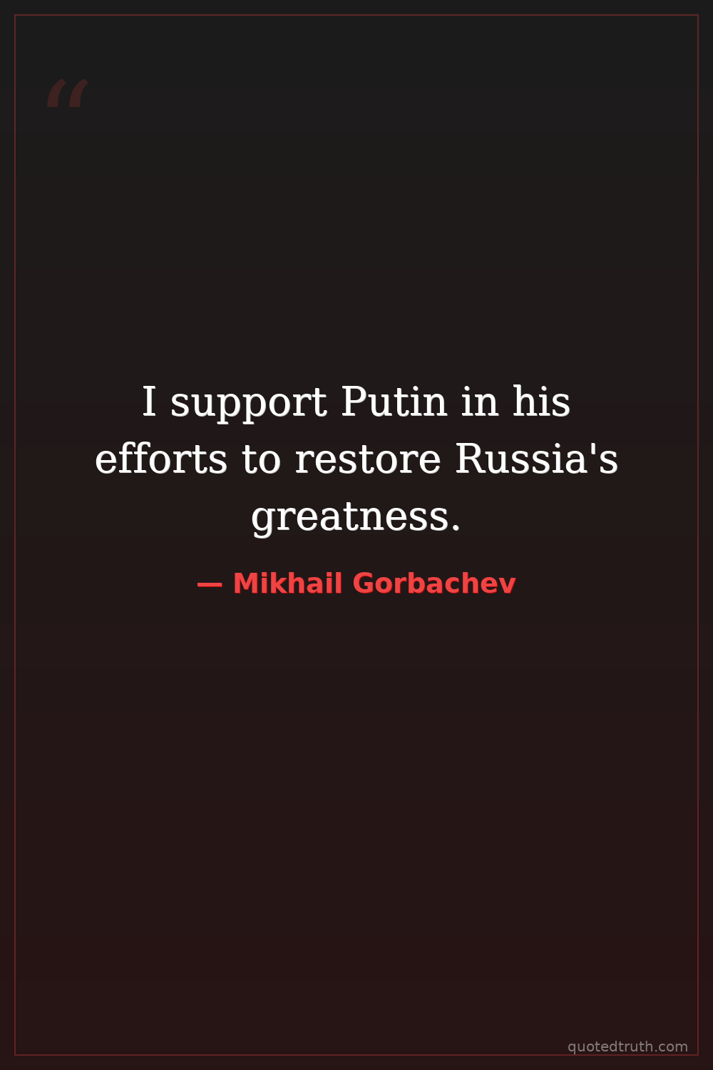 I support Putin in his efforts to restore Russia's greatness.