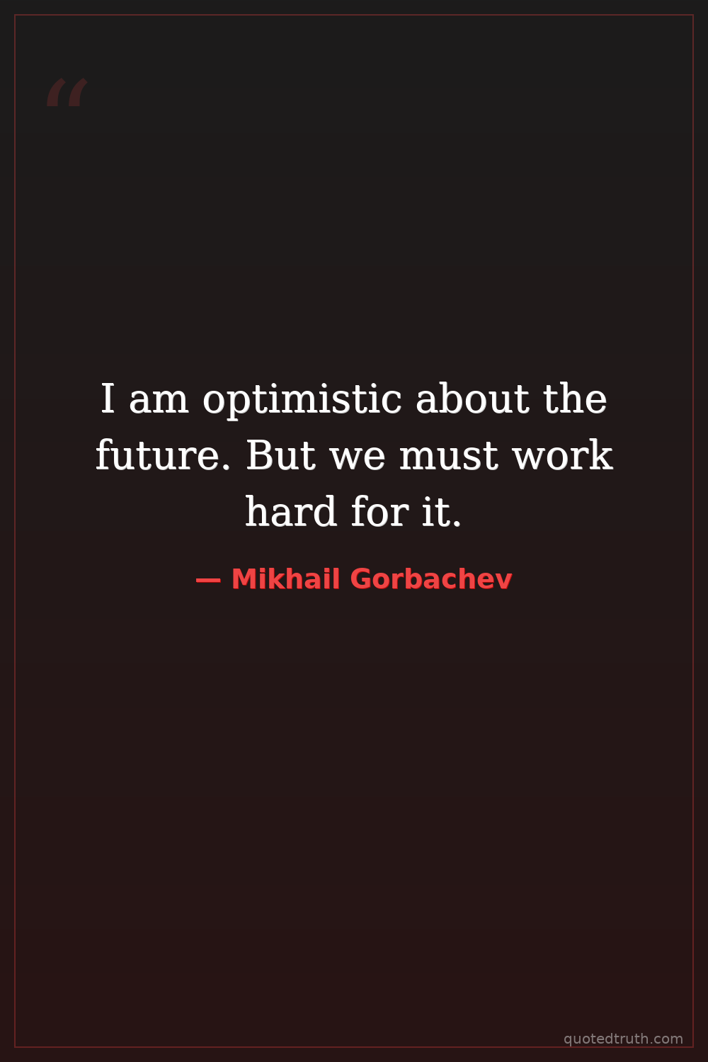 I am optimistic about the future. But we must work hard for it.