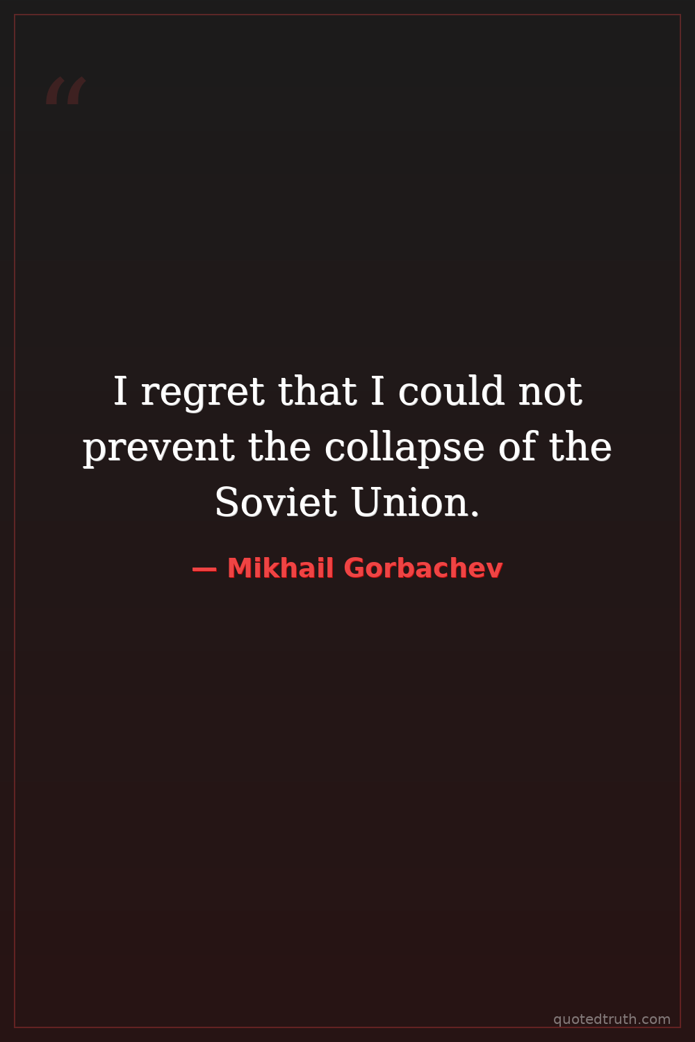 I regret that I could not prevent the collapse of the Soviet Union.