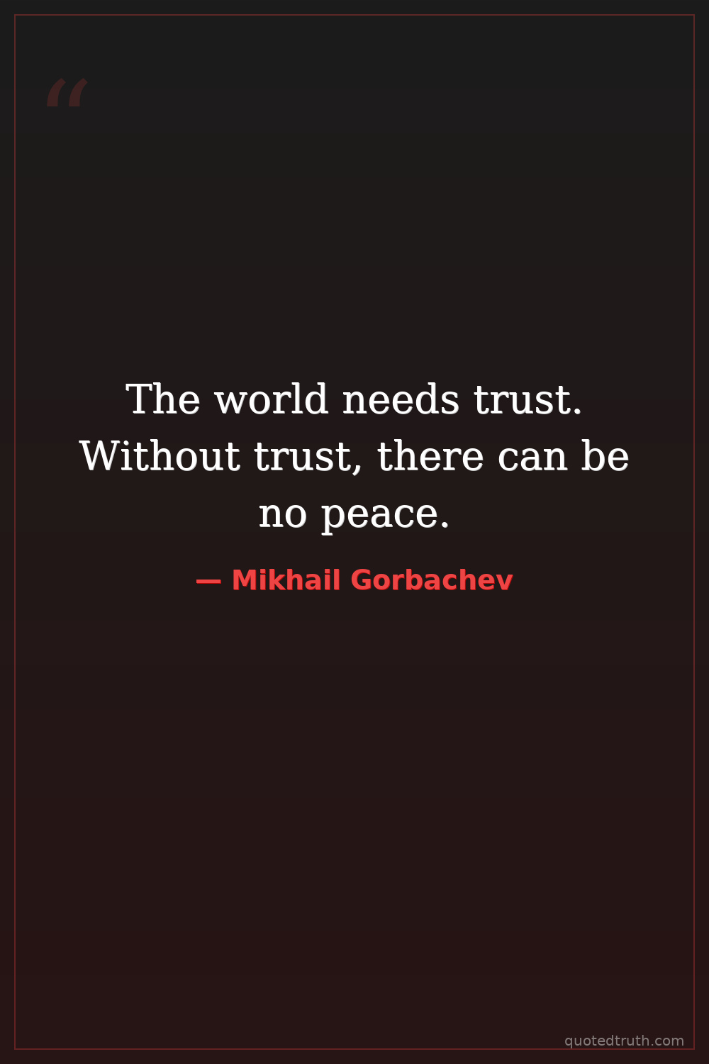 The world needs trust. Without trust, there can be no peace.