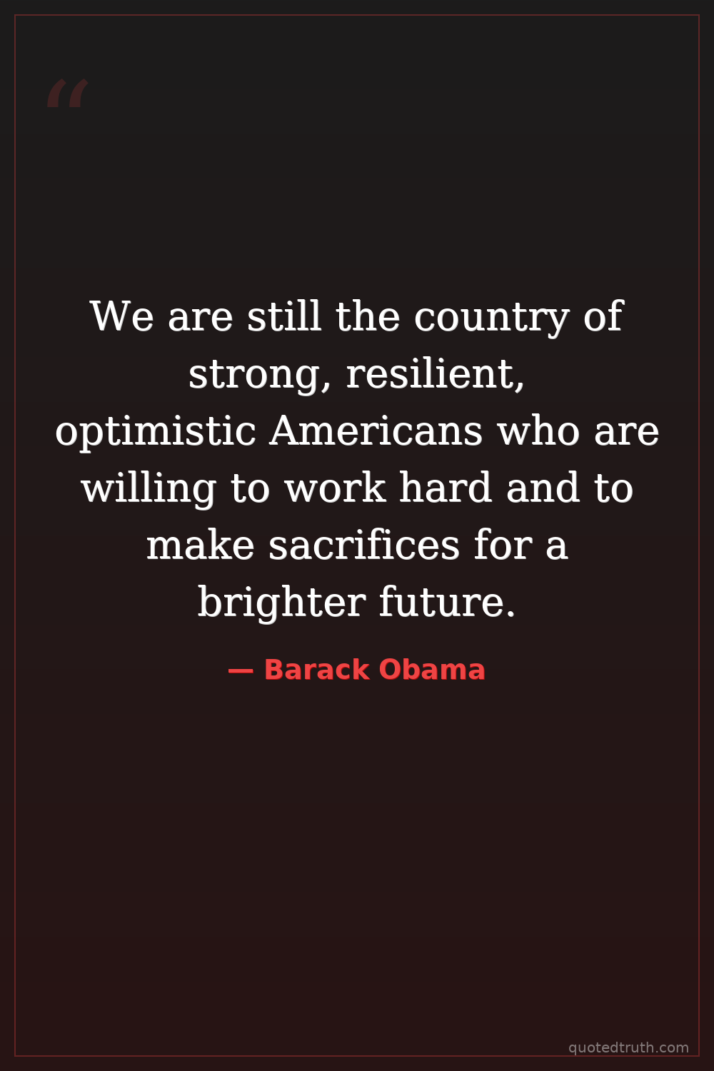 We are still the country of strong, resilient, optimistic Americans who are willing to work hard and to make sacrifices for a brighter future.