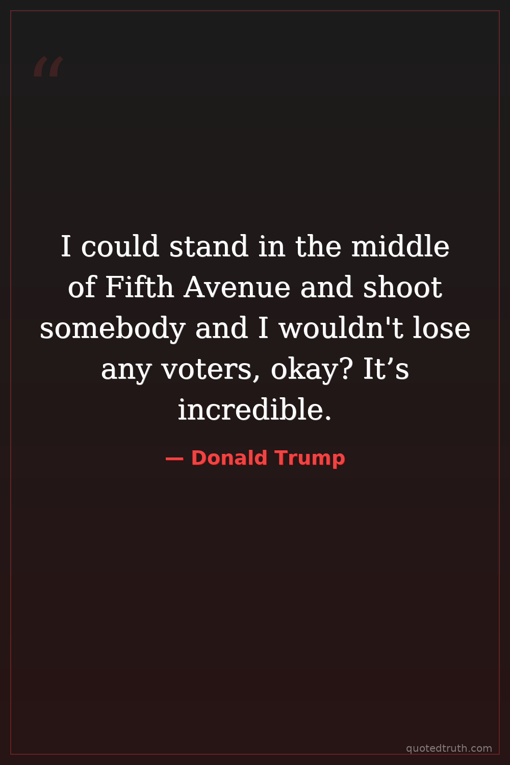 I could stand in the middle of Fifth Avenue and shoot somebody and I wouldn't lose any voters, okay? It’s incredible.