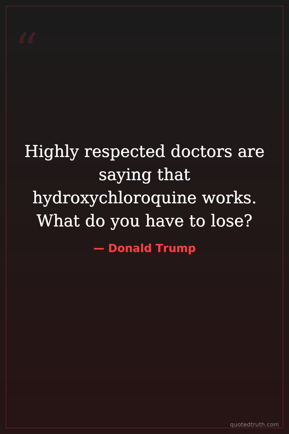 Highly respected doctors are saying that hydroxychloroquine works. What do you have to lose?