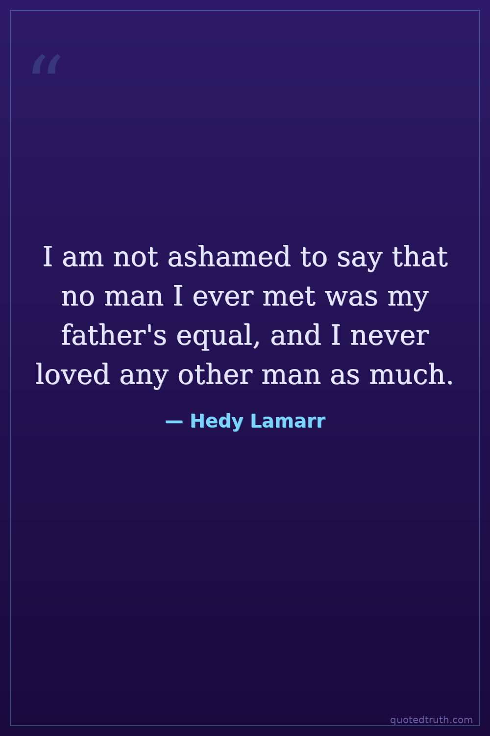 I am not ashamed to say that no man I ever met was my father's equal, and I never loved any other man as much.