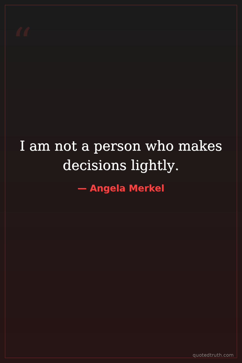 I am not a person who makes decisions lightly.