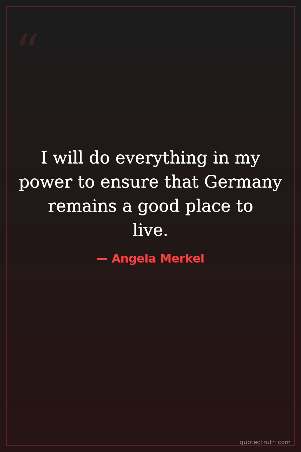 I will do everything in my power to ensure that Germany remains a good place to live.