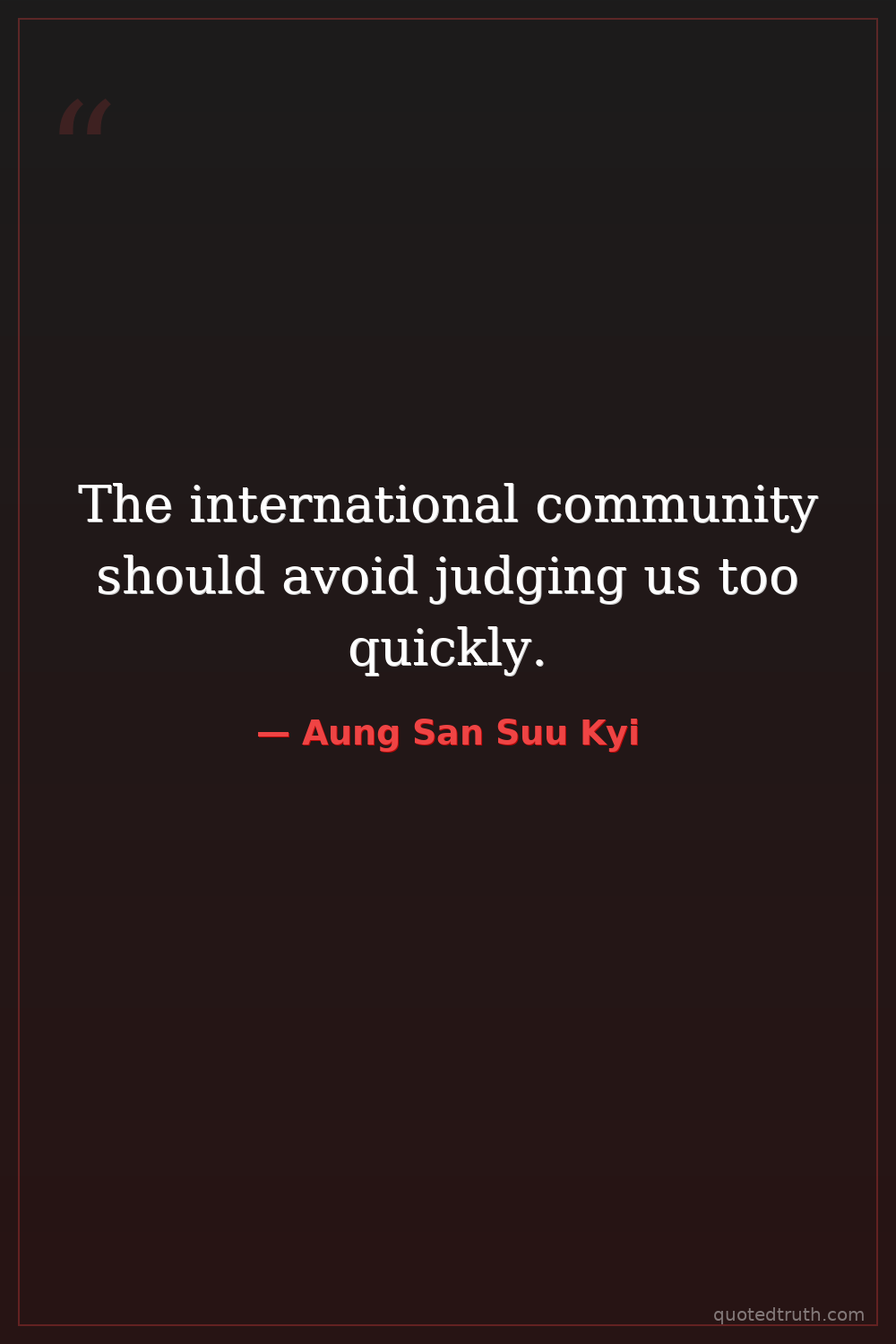 The international community should avoid judging us too quickly.