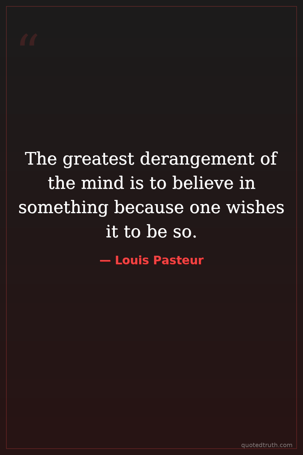 The greatest derangement of the mind is to believe in something because one wishes it to be so.