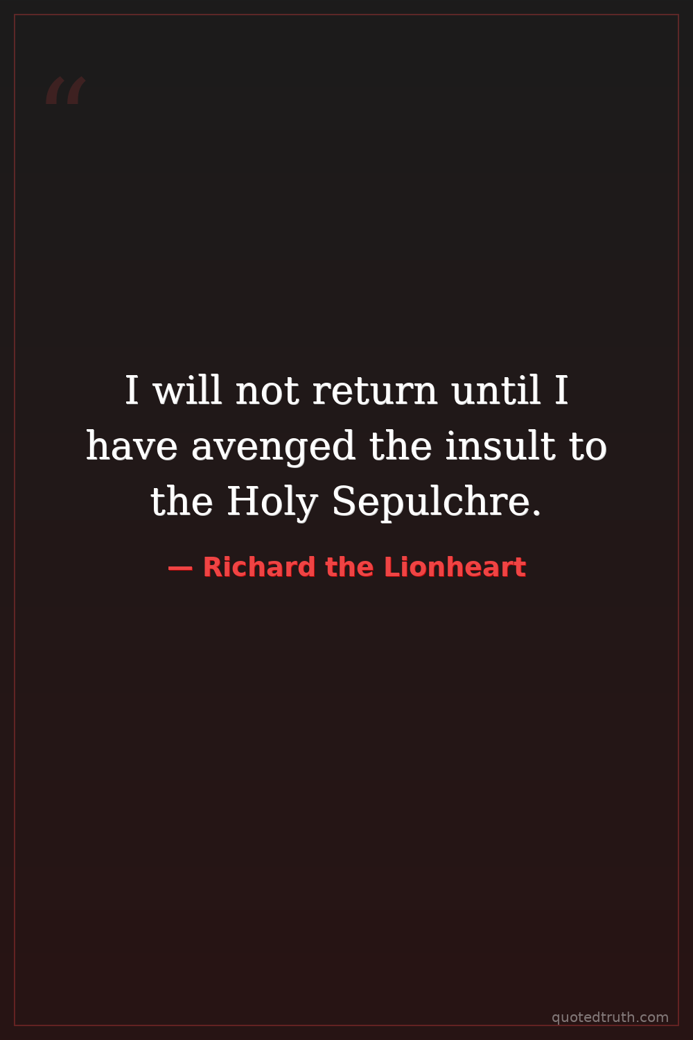 I will not return until I have avenged the insult to the Holy Sepulchre.