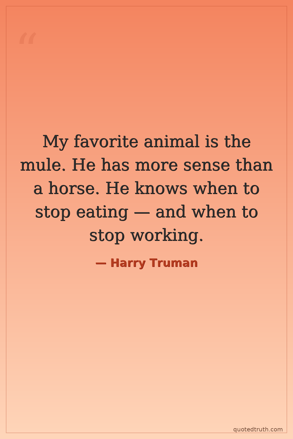 My favorite animal is the mule. He has more sense than a horse. He knows when to stop eating — and when to stop working.