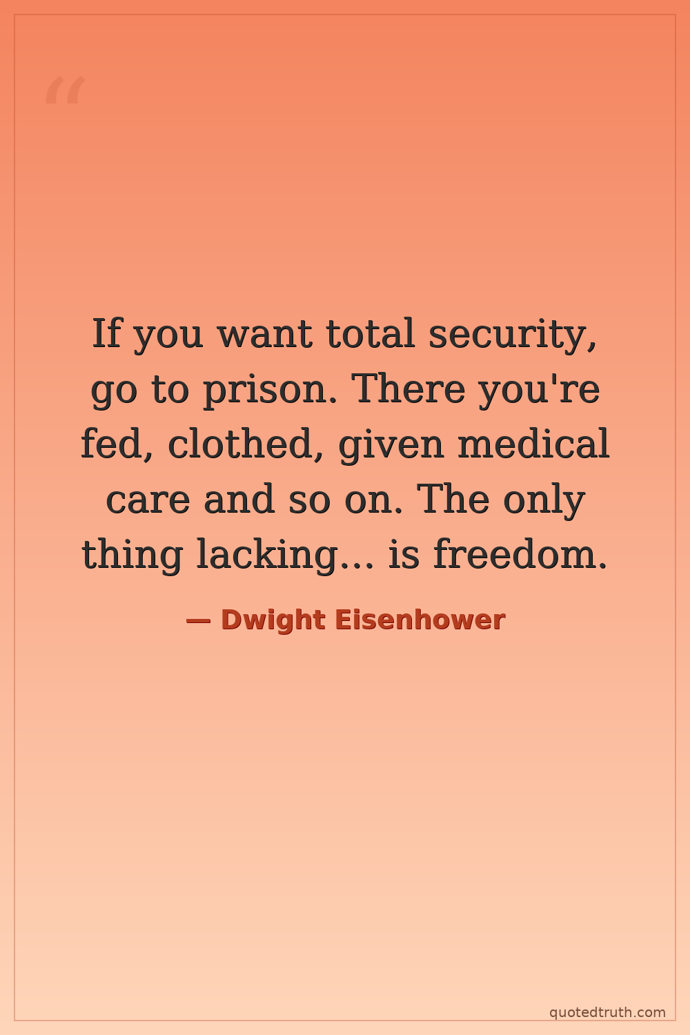 If you want total security, go to prison. There you're fed, clothed, given medical care and so on. The only thing lacking... is freedom.