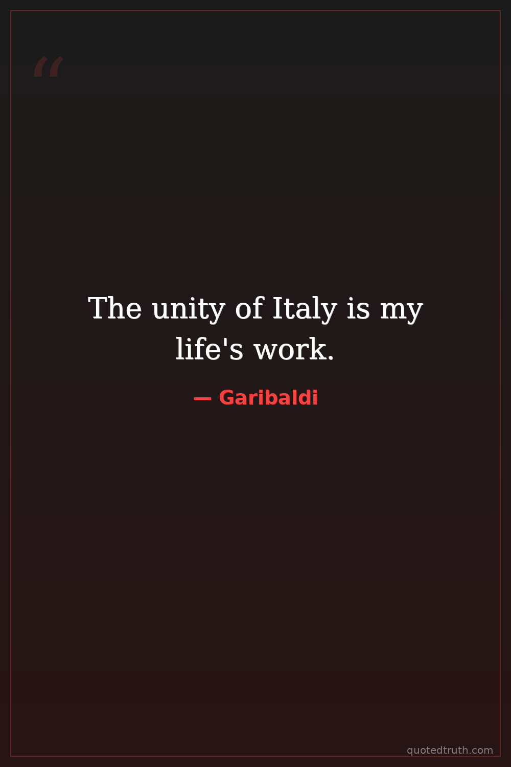 The unity of Italy is my life's work.