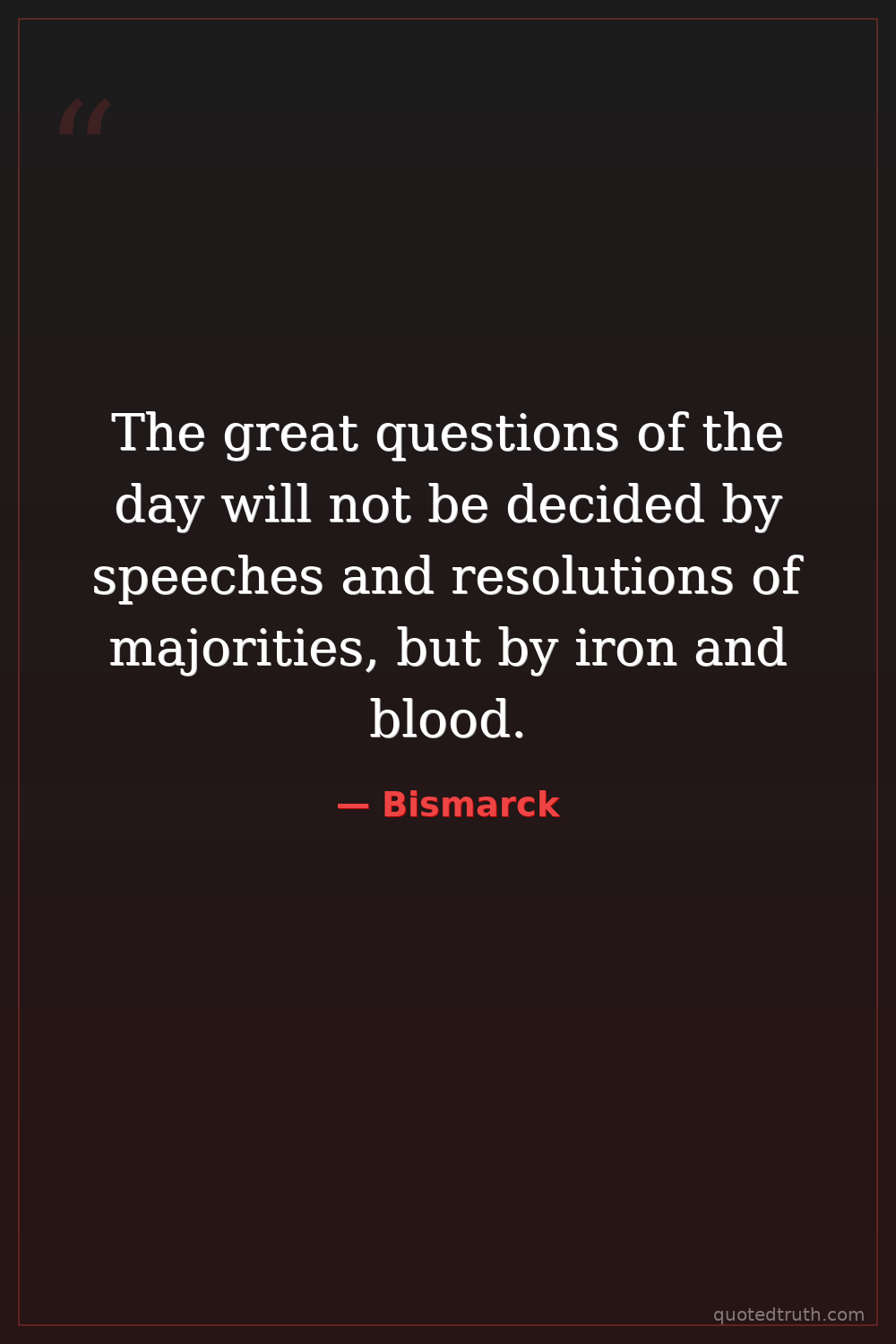 The great questions of the day will not be decided by speeches and resolutions of majorities, but by iron and blood.