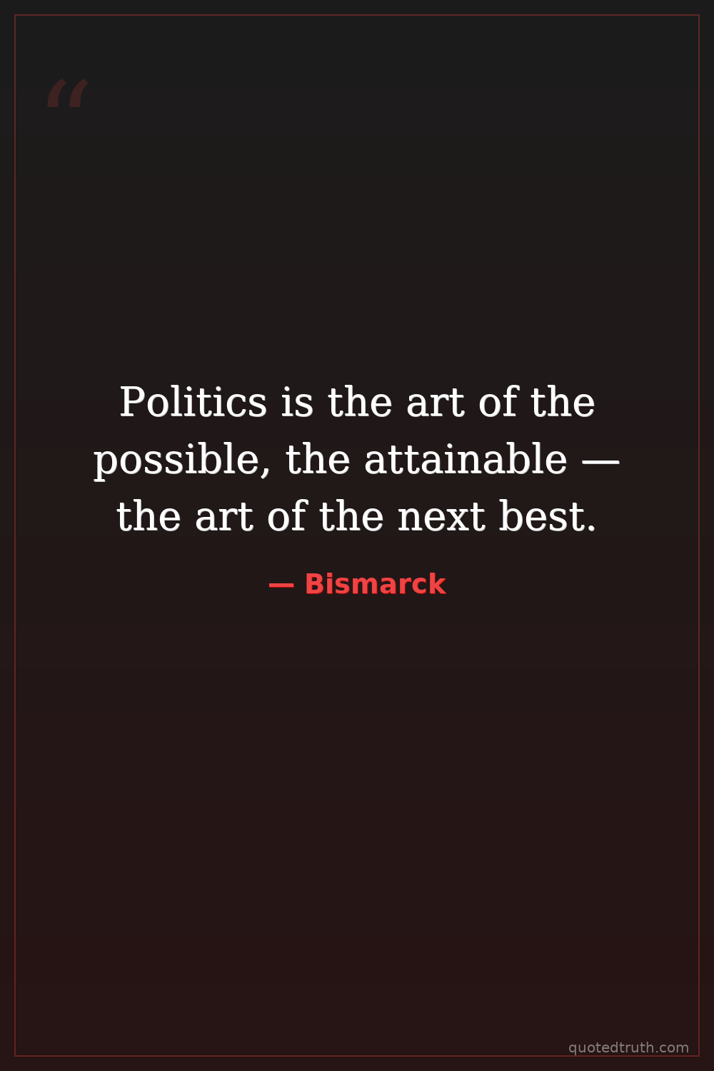 Politics is the art of the possible, the attainable — the art of the next best.